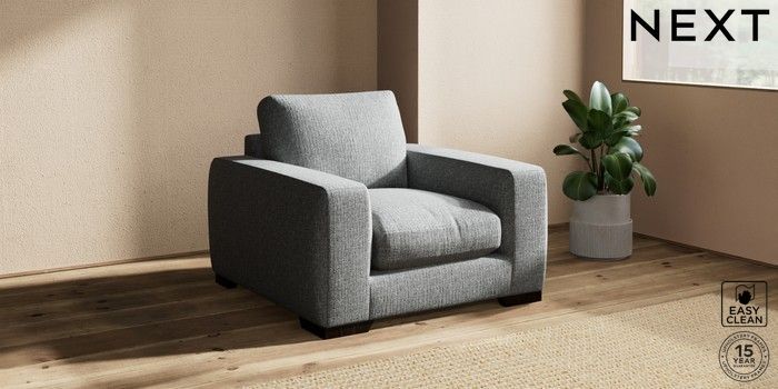 7.2.10 Houghton Deep Relaxed Sit Armchair Chunky Boucle Easy Clean Mid Grey Large Square Angle - Dark | Made Click here to use our website with more accessibility support, for example screen readers