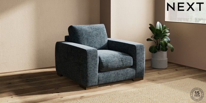 7.2.10 Houghton Deep Relaxed Sit Armchair Chunky Chenille Dark Navy Blue Large Square Angle - Mid | Made Click here to use our website with more accessibility support, for example screen readers