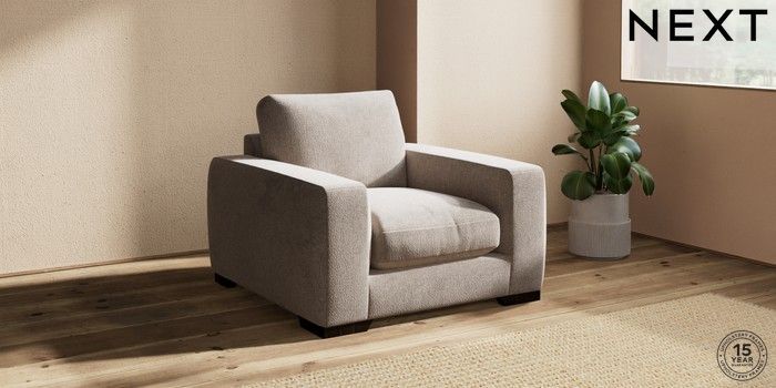 7.2.10 Houghton Deep Relaxed Sit Armchair Chunky Chenille Light Dove Large Square Angle - Dark | Made Click here to use our website with more accessibility support, for example screen readers