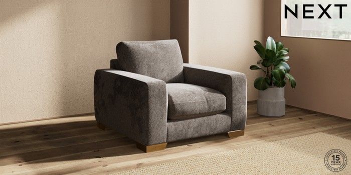 7.2.10 Houghton Deep Relaxed Sit Armchair Chunky Chenille Mink Brown Large Square Angle - Brushed Brass | Made Click here to use our website with more accessibility support, for example screen readers