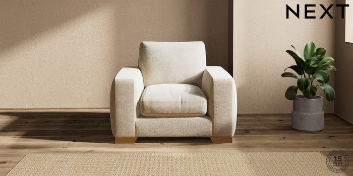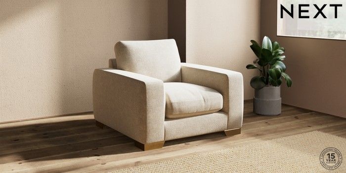 7.2.10 Houghton Deep Relaxed Sit Armchair Chunky Weave Cream Large Square Angle - Brushed Brass | Made Click here to use our website with more accessibility support, for example screen readers
