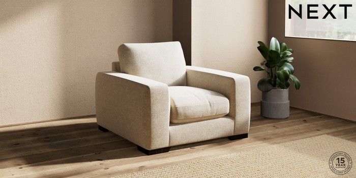 7.2.10 Houghton Deep Relaxed Sit Armchair Chunky Weave Cream Large Square Angle - Dark | Made Click here to use our website with more accessibility support, for example screen readers