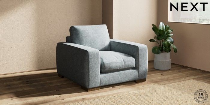 7.2.10 Houghton Deep Relaxed Sit Armchair Chunky Weave Mid Blue Large Square Angle - Mid | Made Click here to use our website with more accessibility support, for example screen readers