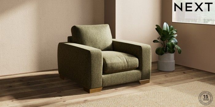 7.2.10 Houghton Deep Relaxed Sit Armchair Cotswold Chenille Dark Green Large Square Angle - Brushed Brass | Made Click here to use our website with more accessibility support, for example screen readers