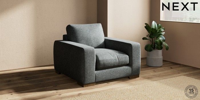 7.2.10 Houghton Deep Relaxed Sit Armchair Cotswold Chenille Dark Grey Large Square Angle - Mid | Made Click here to use our website with more accessibility support, for example screen readers