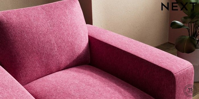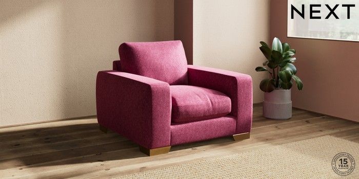 7.2.10 Houghton Deep Relaxed Sit Armchair Cotswold Chenille Dark Raspberry Pink Large Square Angle - Brushed Brass | Made Click here to use our website with more accessibility support, for example screen readers