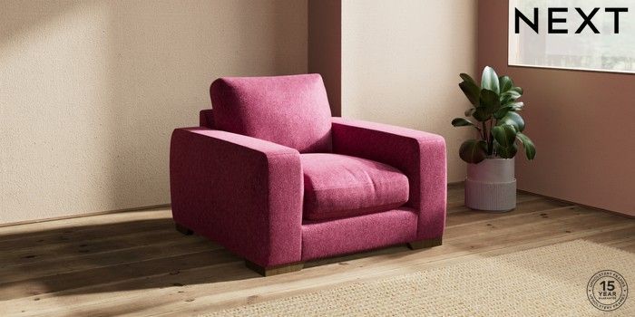 7.2.10 Houghton Deep Relaxed Sit Armchair Cotswold Chenille Dark Raspberry Pink Large Square Angle - Mid | Made Click here to use our website with more accessibility support, for example screen readers