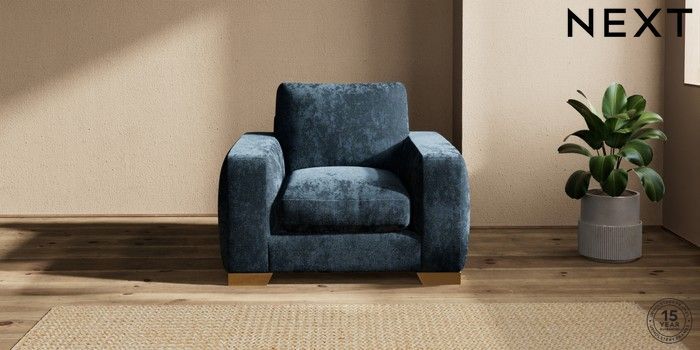 7.2.10 Houghton Deep Relaxed Sit Armchair Distressed Velour Midnight Blue Large Square Angle - Brushed Brass | Made Click here to use our website with more accessibility support, for example screen readers