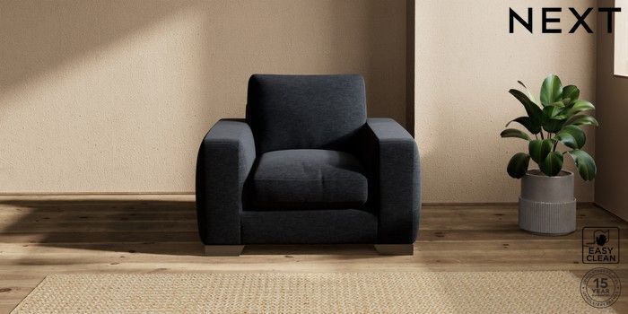 7.2.10 Houghton Deep Relaxed Sit Armchair Fine Chenille Easy Clean Black Large Square Angle - Gunmetal | Made Click here to use our website with more accessibility support, for example screen readers