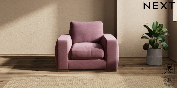 7.2.10 Houghton Deep Relaxed Sit Armchair Fine Chenille Easy Clean Mid Mulberry Purple Large Square Angle - Mid | Made Click here to use our website with more accessibility support, for example screen readers