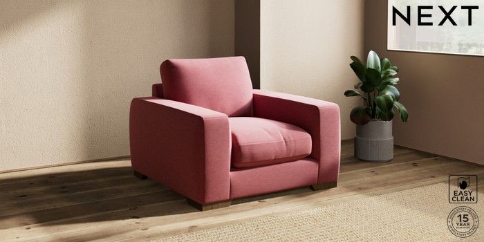 7.2.10 Houghton Deep Relaxed Sit Armchair Fine Chenille Easy Clean Mid Pink Large Square Angle - Mid | Made Click here to use our website with more accessibility support, for example screen readers