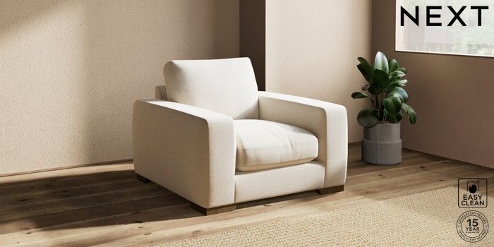 7.2.10 Houghton Deep Relaxed Sit Armchair Fine Chenille Easy Clean Oyster Large Square Angle - Mid | Made Click here to use our website with more accessibility support, for example screen readers