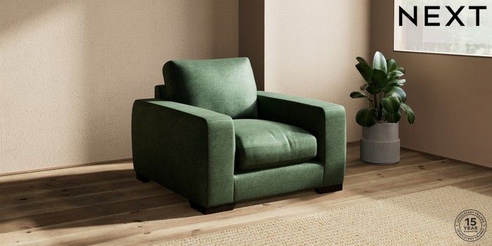 7.2.10 Houghton Deep Relaxed Sit Armchair Luxe Chenille Dark Green Large Square Angle - Dark | Made Click here to use our website with more accessibility support, for example screen readers