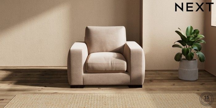 7.2.10 Houghton Deep Relaxed Sit Armchair Luxe Chenille Mid Natural Large Square Angle - Dark | Made Click here to use our website with more accessibility support, for example screen readers
