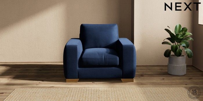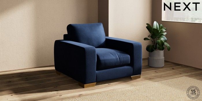 7.2.10 Houghton Deep Relaxed Sit Armchair Luxe Chenille Navy Blue Large Square Angle - Brushed Brass | Made Click here to use our website with more accessibility support, for example screen readers
