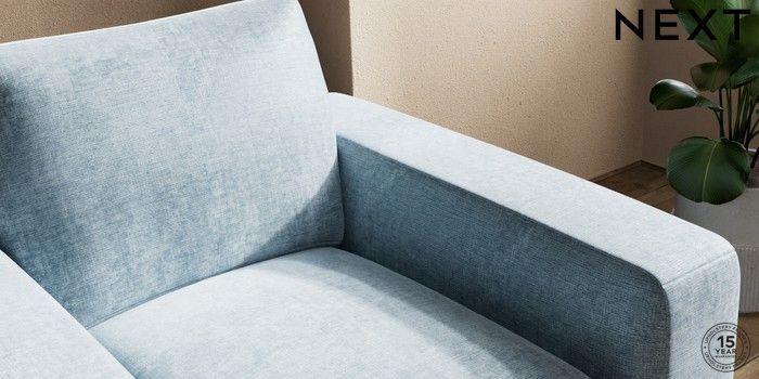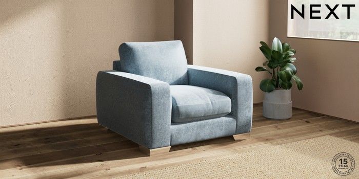 7.2.10 Houghton Deep Relaxed Sit Armchair Plush Chenille Light Blue Large Square Angle - Chrome Metal | Made Click here to use our website with more accessibility support, for example screen readers