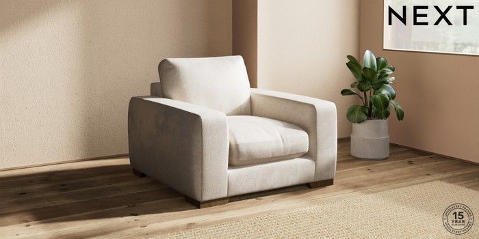 7.2.10 Houghton Deep Relaxed Sit Armchair Plush Chenille Oyster Large Square Angle - Mid | Made Click here to use our website with more accessibility support, for example screen readers