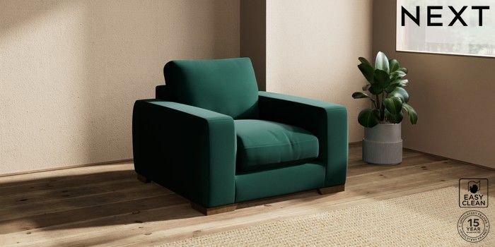 7.2.10 Houghton Deep Relaxed Sit Armchair Plush Velvet Easy Clean Bottle Green Large Square Angle - Mid | Made Click here to use our website with more accessibility support, for example screen readers