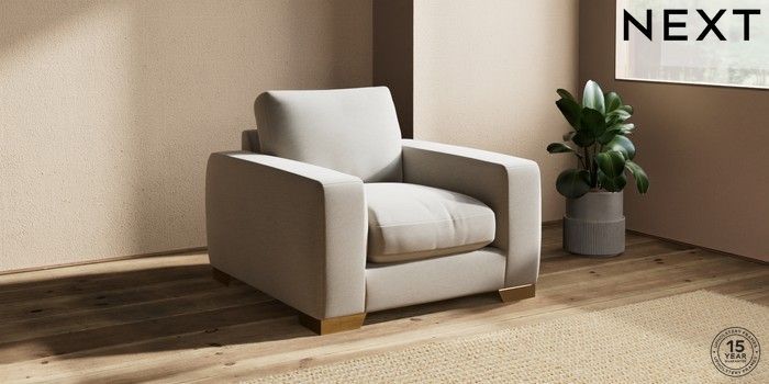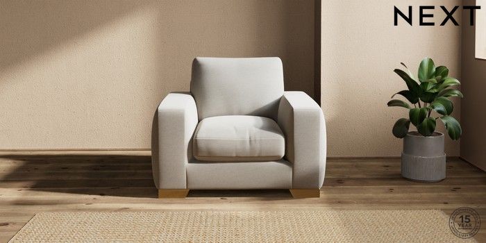 7.2.10 Houghton Deep Relaxed Sit Armchair Ripple Chenille Light Natural Large Square Angle - Brushed Brass | Made Click here to use our website with more accessibility support, for example screen readers