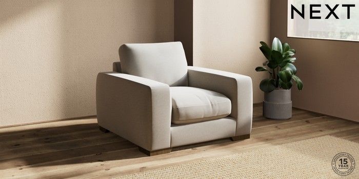 7.2.10 Houghton Deep Relaxed Sit Armchair Ripple Chenille Light Natural Large Square Angle - Mid | Made Click here to use our website with more accessibility support, for example screen readers
