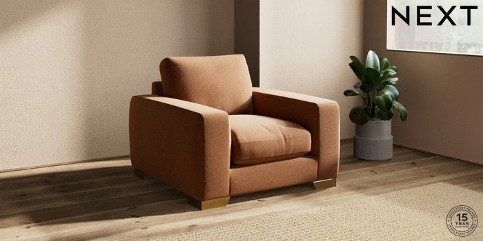 7.2.10 Houghton Deep Relaxed Sit Armchair Ripple Chenille Mid Rust Brown Large Square Angle - Brushed Brass | Made Click here to use our website with more accessibility support, for example screen readers