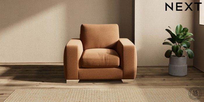 7.2.10 Houghton Deep Relaxed Sit Armchair Ripple Chenille Mid Rust Brown Large Square Angle - Chrome Metal | Made Click here to use our website with more accessibility support, for example screen readers