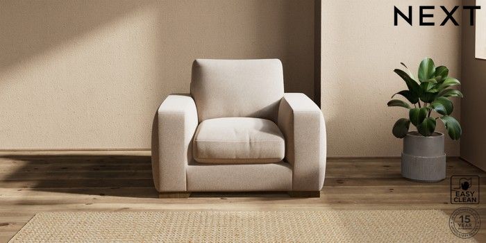 7.2.10 Houghton Deep Relaxed Sit Armchair Tweedy Blend Easy Clean Light Dove Natural Large Square Angle - Mid | Made Click here to use our website with more accessibility support, for example screen readers
