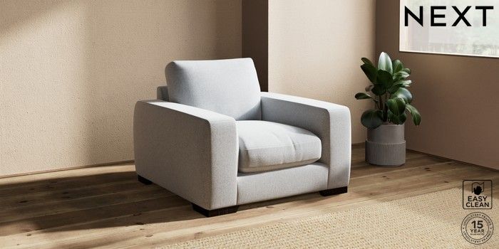 7.2.10 Houghton Deep Relaxed Sit Armchair Tweedy Blend Easy Clean Light Silver Grey Large Square Angle - Dark | Made Click here to use our website with more accessibility support, for example screen readers