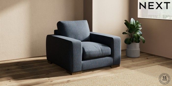 7.2.10 Houghton Deep Relaxed Sit Armchair Tweedy Chenille Navy Blue Large Square Angle - Mid | Made Click here to use our website with more accessibility support, for example screen readers