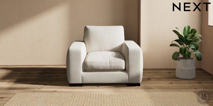 7.2.10 Houghton Deep Relaxed Sit Armchair Tweedy Chenille Oyster Large Square Angle - Dark | Made Click here to use our website with more accessibility support, for example screen readers