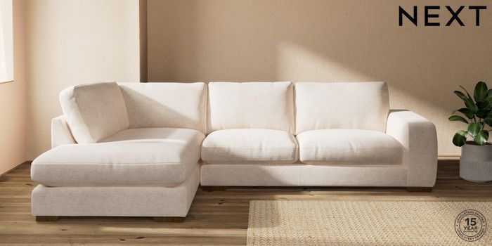 7.2.10 Houghton Deep Relaxed Sit Large Corner Chaise - Left Hand Boucle Chenille Oyster Large Square Angle - Mid | Made Click here to use our website with more accessibility support, for example screen readers