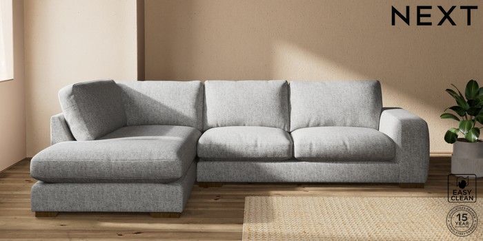 7.2.10 Houghton Deep Relaxed Sit Large Corner Chaise - Left Hand Chunky Boucle Easy Clean Light Grey Large Square Angle - Mid | Made Click here to use our website with more accessibility support, for example screen readers