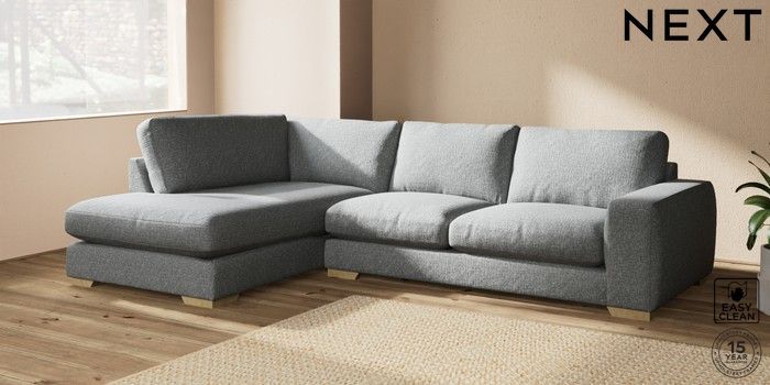 7.2.10 Houghton Deep Relaxed Sit Large Corner Chaise - Left Hand Chunky Boucle Easy Clean Mid Grey Large Square Angle - Light | Made Click here to use our website with more accessibility support, for example screen readers