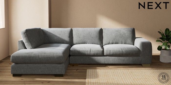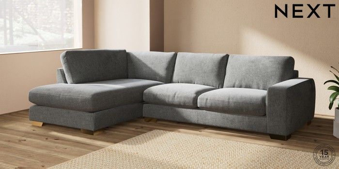 7.2.10 Houghton Deep Relaxed Sit Large Corner Chaise - Left Hand Chunky Chenille Dark Grey Large Square Angle - Brushed Brass | Made Click here to use our website with more accessibility support, for example screen readers