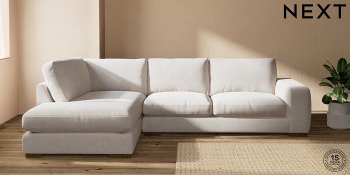 7.2.10 Houghton Deep Relaxed Sit Large Corner Chaise - Left Hand Chunky Chenille Oyster Large Square Angle - Mid | Made Click here to use our website with more accessibility support, for example screen readers