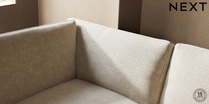 7.2.10 Houghton Deep Relaxed Sit Large Corner Chaise - Left Hand Chunky Weave Cream Large Square Angle - Chrome Metal | Made Click here to use our website with more accessibility support, for example screen readers
