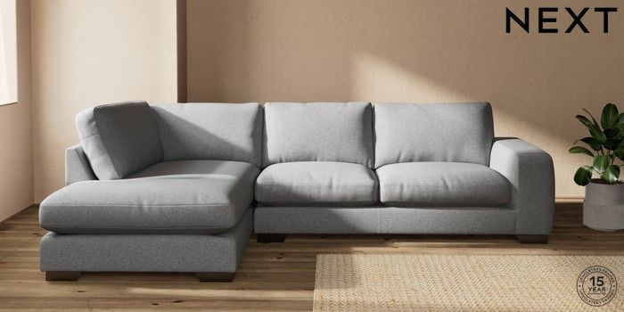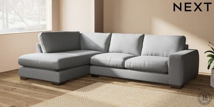 7.2.10 Houghton Deep Relaxed Sit Large Corner Chaise - Left Hand Chunky Weave Mid Grey Large Square Angle - Gunmetal | Made Click here to use our website with more accessibility support, for example screen readers