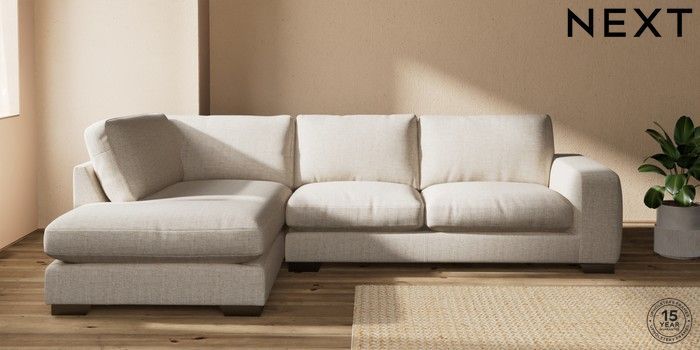7.2.10 Houghton Deep Relaxed Sit Large Corner Chaise - Left Hand Chunky Weave Mid Natural Large Square Angle - Gunmetal | Made Click here to use our website with more accessibility support, for example screen readers