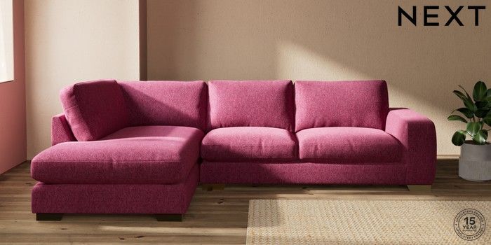 7.2.10 Houghton Deep Relaxed Sit Large Corner Chaise - Left Hand Cotswold Chenille Dark Raspberry Pink Large Square Angle - Brushed Brass | Made Click here to use our website with more accessibility support, for example screen readers
