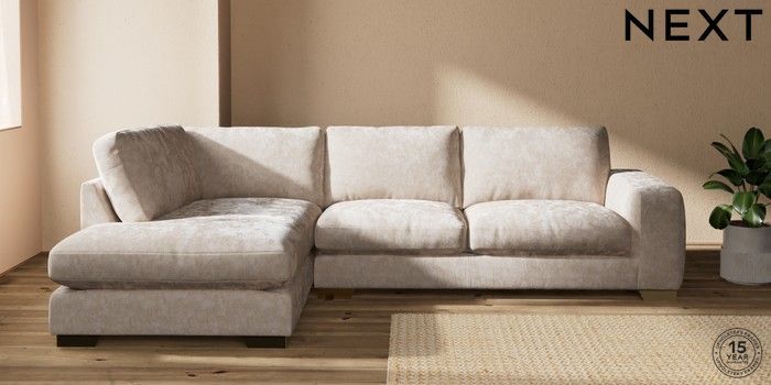7.2.10 Houghton Deep Relaxed Sit Large Corner Chaise - Left Hand Distressed Velour Mid Natural Large Square Angle - Brushed Brass | Made Click here to use our website with more accessibility support, for example screen readers
