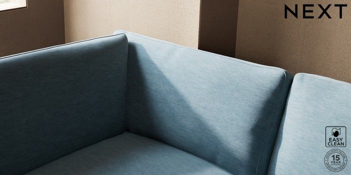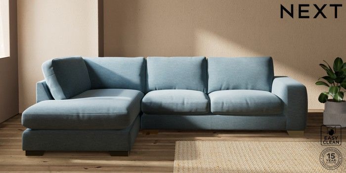7.2.10 Houghton Deep Relaxed Sit Large Corner Chaise - Left Hand Fine Chenille Easy Clean Mid Blue Large Square Angle - Brushed Brass | Made Click here to use our website with more accessibility support, for example screen readers