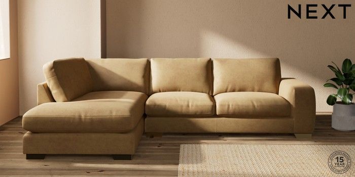 7.2.10 Houghton Deep Relaxed Sit Large Corner Chaise - Left Hand Luxe Chenille Honey Yellow Large Square Angle - Brushed Brass | Made Click here to use our website with more accessibility support, for example screen readers