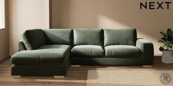 7.2.10 Houghton Deep Relaxed Sit Large Corner Chaise - Left Hand Luxe Chenille Mid Green Large Square Angle - Light | Made Click here to use our website with more accessibility support, for example screen readers