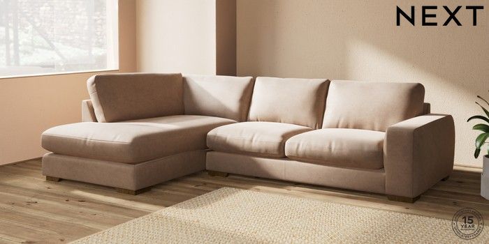 7.2.10 Houghton Deep Relaxed Sit Large Corner Chaise - Left Hand Luxe Chenille Mid Natural Large Square Angle - Mid | Made Click here to use our website with more accessibility support, for example screen readers