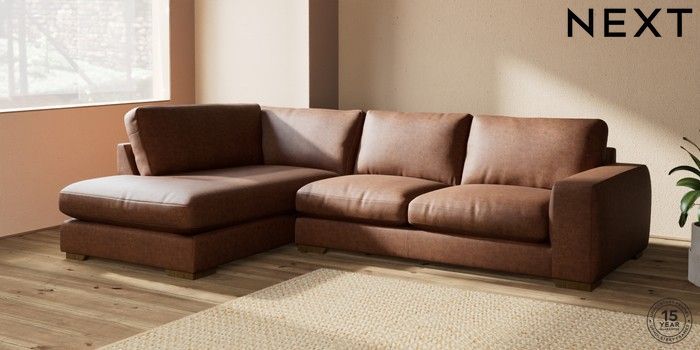 7.2.10 Houghton Deep Relaxed Sit Large Corner Chaise - Left Hand Monza Faux Leather Easy Clean Chestnut Brown Large Square Angle - Mid | Made Click here to use our website with more accessibility support, for example screen readers