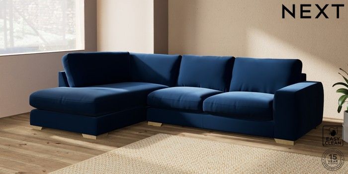 7.2.10 Houghton Deep Relaxed Sit Large Corner Chaise - Left Hand Plush Velvet Easy Clean Navy Blue Large Square Angle - Light | Made Click here to use our website with more accessibility support, for example screen readers