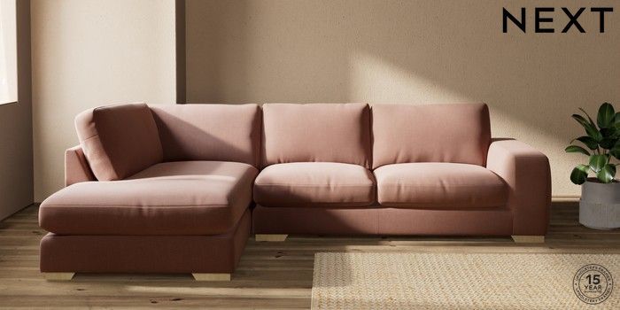 7.2.10 Houghton Deep Relaxed Sit Large Corner Chaise - Left Hand Relaxed Linen Look Light Rust Brown Large Square Angle - Light | Made Click here to use our website with more accessibility support, for example screen readers