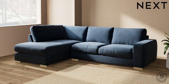 7.2.10 Houghton Deep Relaxed Sit Large Corner Chaise - Left Hand Ripple Chenille Dark Blue Large Square Angle - Light | Made Click here to use our website with more accessibility support, for example screen readers