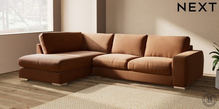 7.2.10 Houghton Deep Relaxed Sit Large Corner Chaise - Left Hand Ripple Chenille Mid Rust Brown Large Square Angle - Chrome Metal | Made Click here to use our website with more accessibility support, for example screen readers