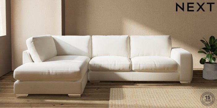 7.2.10 Houghton Deep Relaxed Sit Large Corner Chaise - Left Hand Ripple Chenille Oyster Large Square Angle - Chrome Metal | Made Click here to use our website with more accessibility support, for example screen readers
